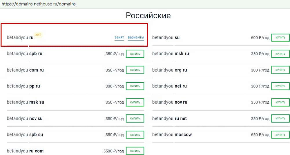 domains nethouse ru - служба для поиска свободных доменных имен от NetHouse