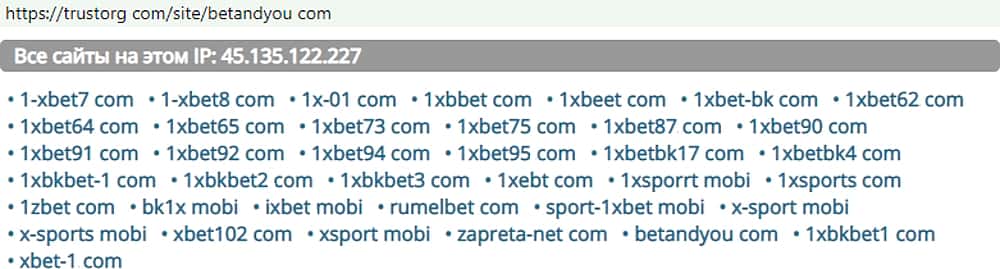 С кем делит IP-адрес недобукмекер Бетанд Ю?
