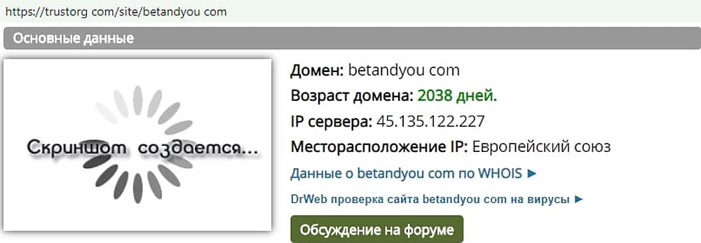 - Возраст доменного имени тотализатора-однодневки Бетанд Ю