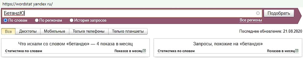 Интенсивность поиска разводил по названию "БетандЮ" находится на уровне пола. Ее отсутствие не играет на руку мошенникам, а следовательно, не позволит надуть много людей.