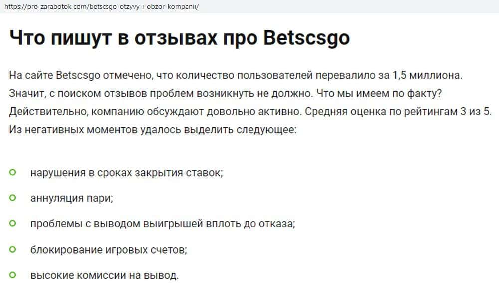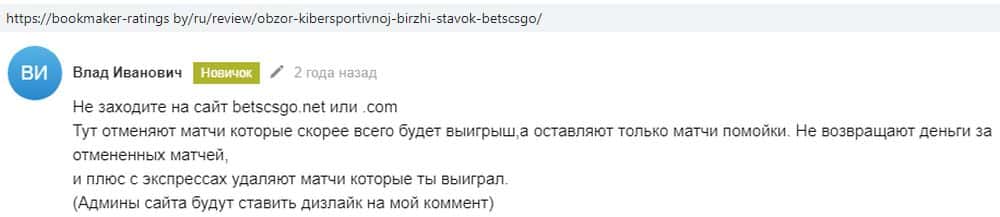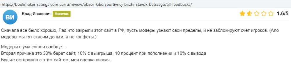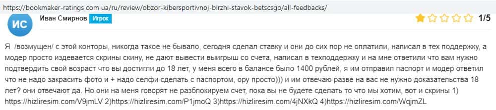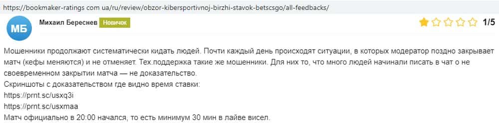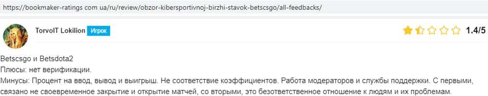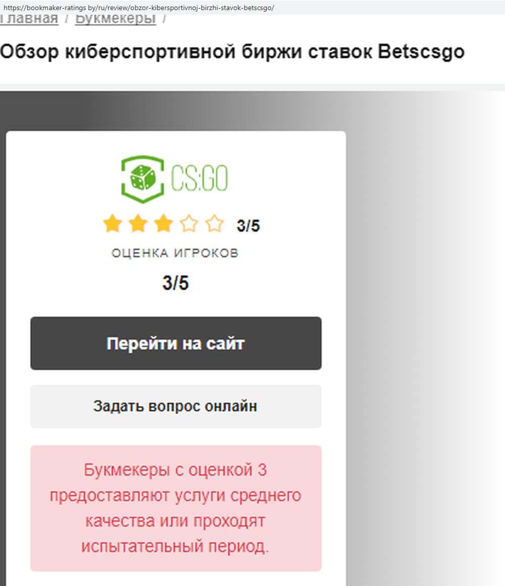Обзоры мошеннической конторы Бетс КСГО на других ресурсах