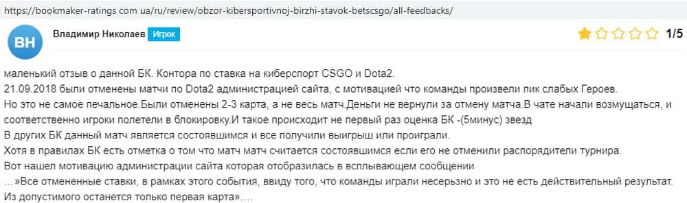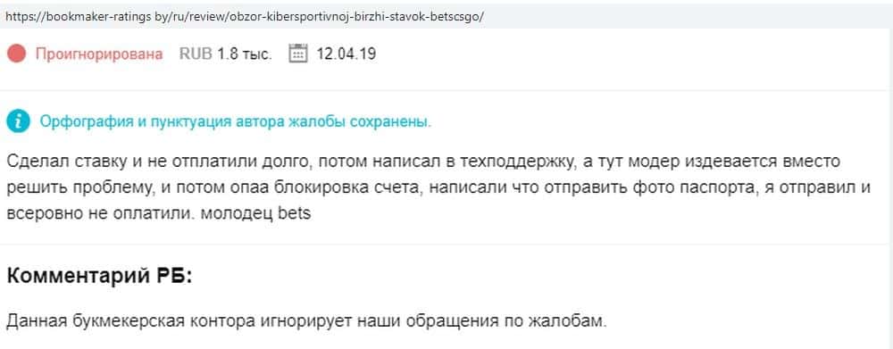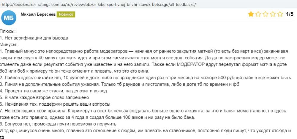 - Обзоры мошеннической конторы Бетс КСГО на других ресурсах