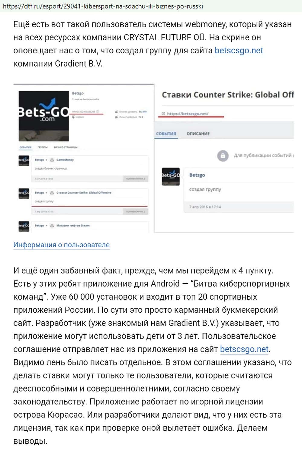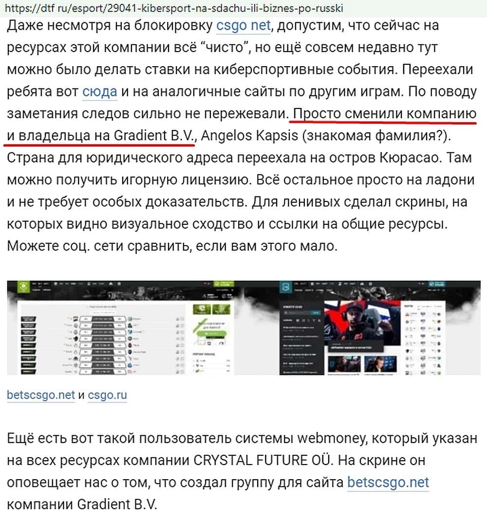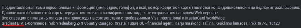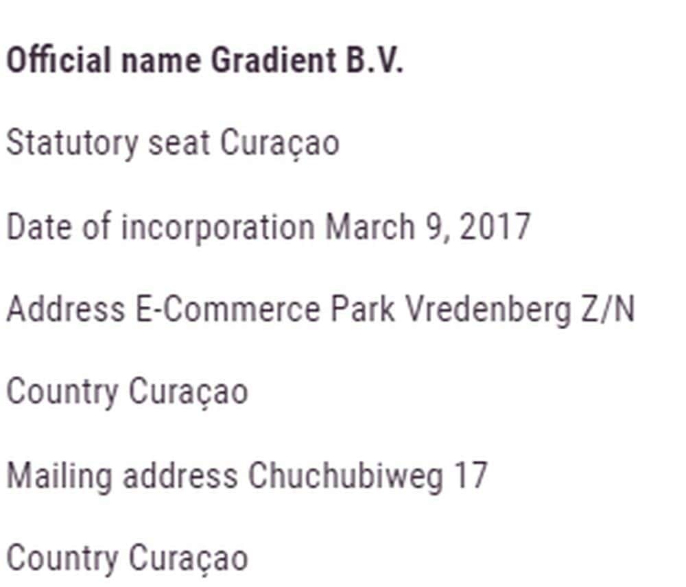 Как утверждают жулики Бетс КСГО на своем сайте, их шарага находится под управлением некой оффшорной скам-конторы Gradient B.V.,а также недоорганизации Crystal Future OÜ.