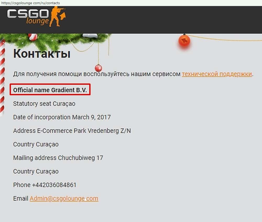 У жуликов BetsCSGO Net имеется еще одна площадка для развода игроманов на деньги. Это ЦСГО Лаундж, которая также управляется конторой Gradient B.V. - лохотронящей народ.