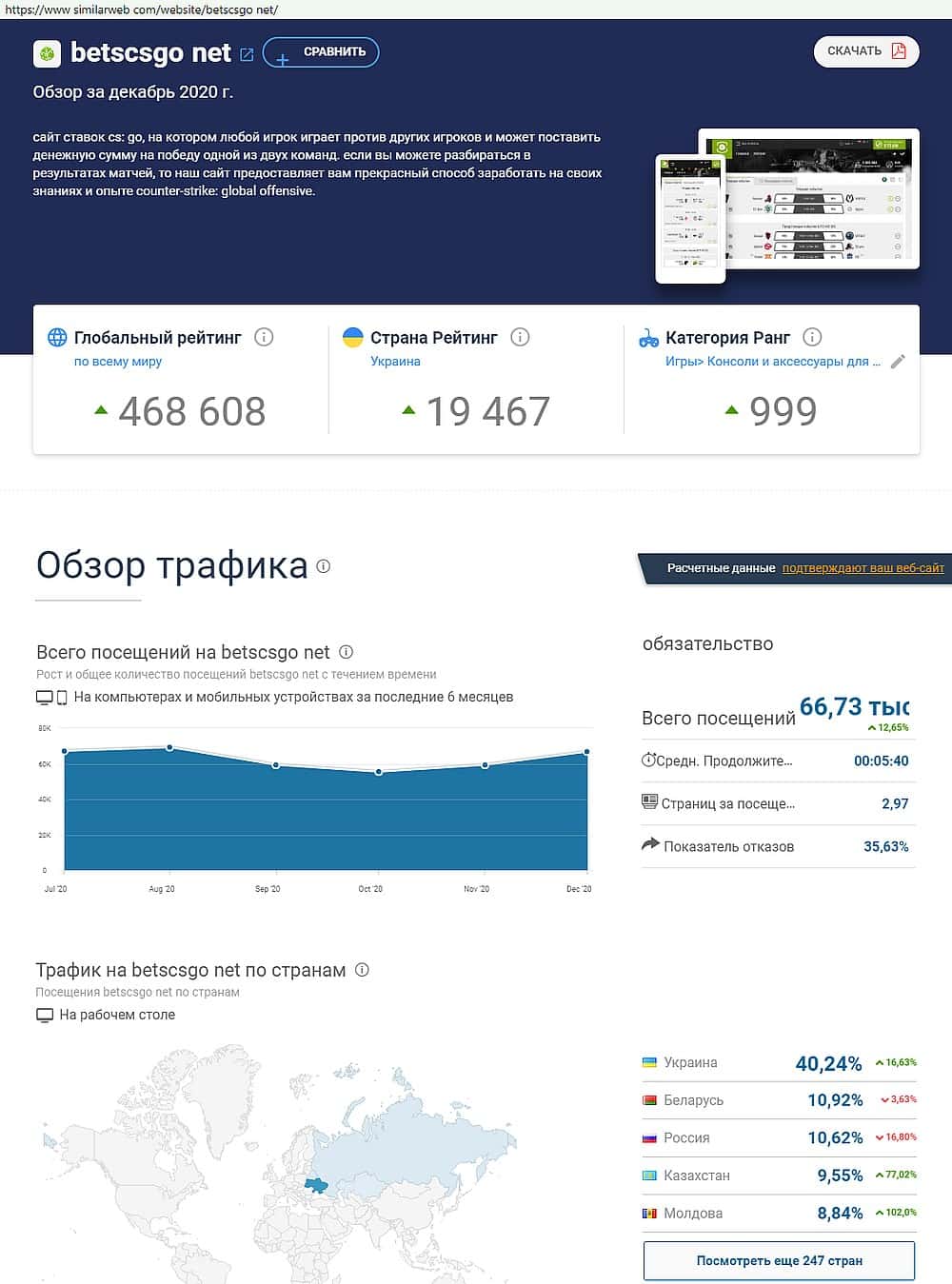 Львиная доля трафика в сливной проект BetsCSGO Net, как можно увидеть, поступает с территории Украины. Второе место практически поделили между собой Россия и Беларусь.
