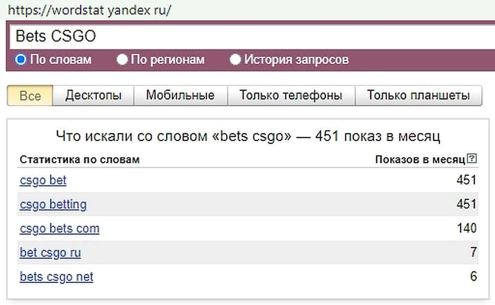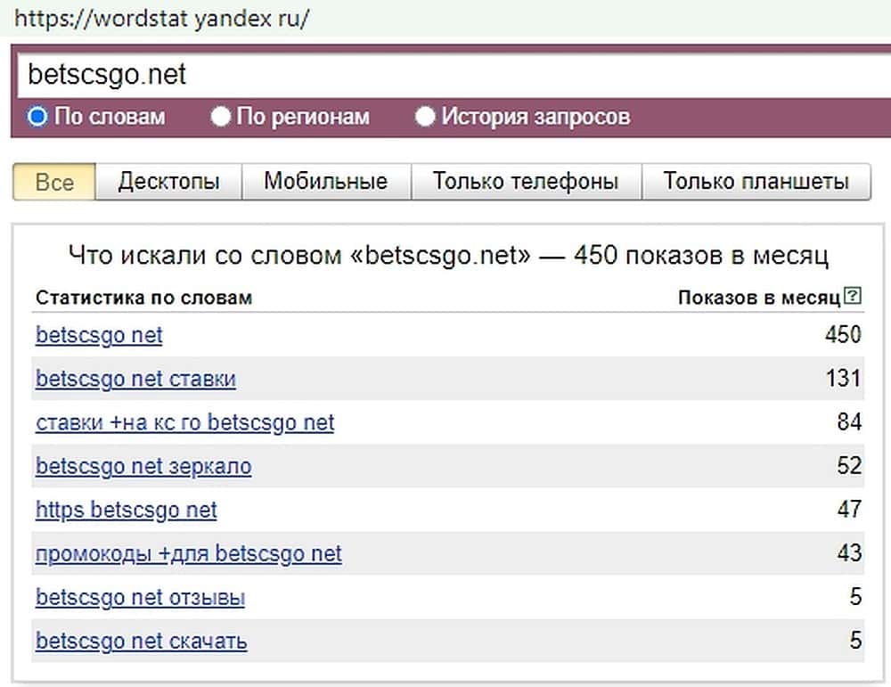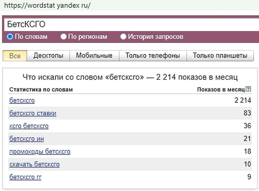 - Насколько востребован лохопритон BetsCSGO Net в Яндекс?