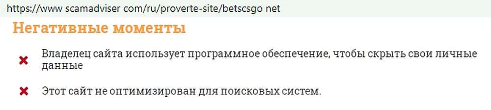 Вы только взгляните, сколько отрицательных моментов обнаруживают пользователи гнилого киберсервиса BetsCSGO Net. У кого-то осталось еще желание сюда завести деньги?