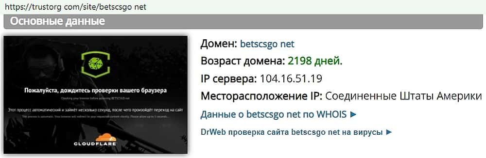 Домену мутного проекта Бетс КСГО якобы более 6 лет, однако, это может быть просто перекупленный домен, для создания положительного образа надежности этого недопроекта.