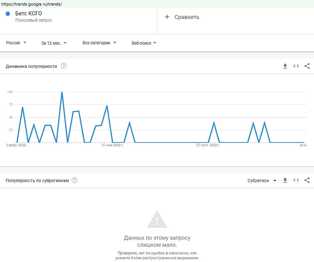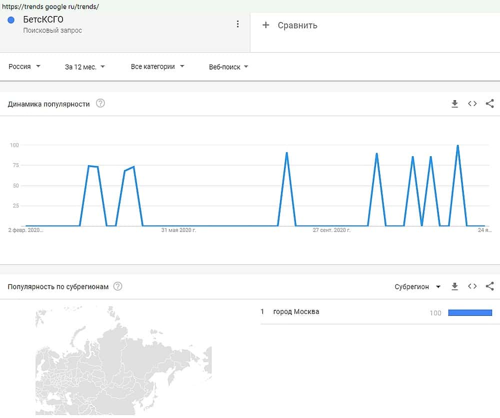 - Как часто ищут шарашку Бетс КСГО с помощью Google?