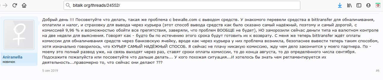 BeWalle Com находятся в черном списке обменников на известном ресурсе