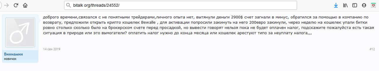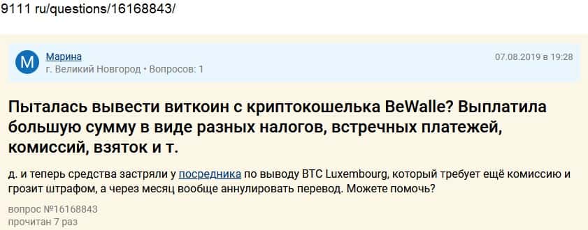 Очередной пользователь выплатил кучу денег в виде налогов и других сборов и ничего не получил взамен от BeWalle Com