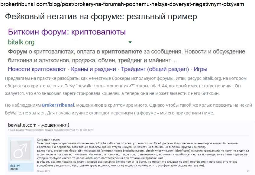 Жулики Бе Вейлл специально оставляют фейковые негативные отзывы о себе на сторонних ресурсах