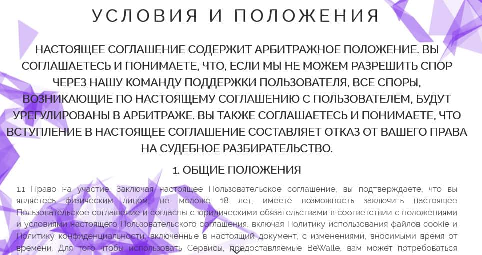 Что можно сказать по поводу клиентского соглашения конторы BeWalle Com?