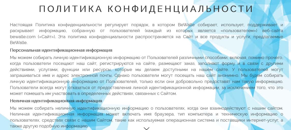 С политикой конфиденциальности конторы Бе Вейлл все также, как и с договором: ваши персональные данные нельзя назвать в безопасности. Они потом запросто перейдут в руки третьим лицам, а там дальше они с ними сделают уже все, что захотят.