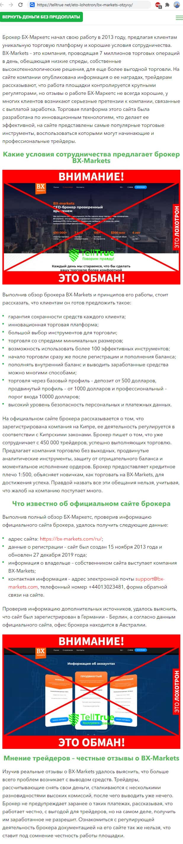 - Сведения об официальном интернет портале мошенников bx-markets com
