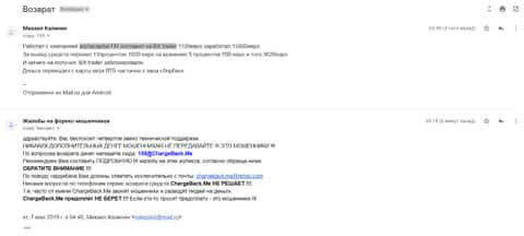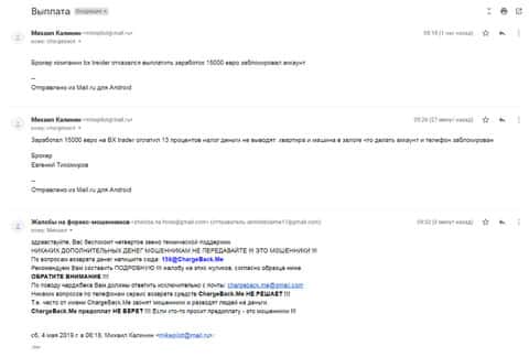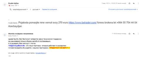 Один гражданин Азербайджана написал нам жалобу-обращение, в котором обвиняет кухню БХ Трейдер в том, что аферисты украли у него 270 евро. И правильно делает, так как это уже не первый случай с которым мы сталкиваемся. И обычно люди, после такого, начинают писать подробную жалобу на веб-портал ChargeBack.Me где знают все об этой конторе и могут надавить на слабые места.