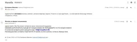 Автор письма рассказал историю как он попался сразу в две форекс-конторы. Он вложил в кухню БХ Трейдер порядка 1500 евро, а в контору AlphaCapital около 1100 евро. Теперь жулики требуют вложить еще денег для вывода, но он написал в службу ChargeBack.Me где постараются помочь в этом деле.
