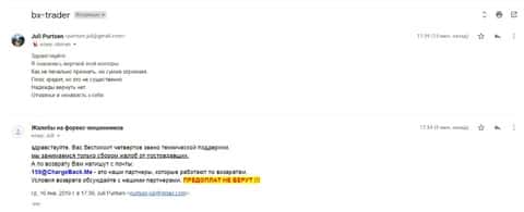 Поводом для написания сего примечательного информационного материала о кухонной организации БХТрейдер стала жалоба на данный криптовалютный скам-проект. Сообщение пришедшее на почтовый адрес веб-площадки forex-brokers pro, помимо названия компании и ее контактов, не содержит каких-либо других важных сведений о конторе BX Trader. Но все же, если интернет-пользователь сообщил о существовании конторы БХ Трейдер на сайт, публикующие данные об аферистах всемирной паутины, то значит BX Trader был замечен в совершении противоправных действий против собственной клиентуры.