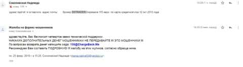 Далее предлагается к ознакомлению жалоба на аферистов БхТрейдер от клиента, потерявшего немалую сумму в размере 15000 евро. В ответ автору данного материала последовала рекомендации обратится в ChargeBack.Me где знают как вернуть деньги.