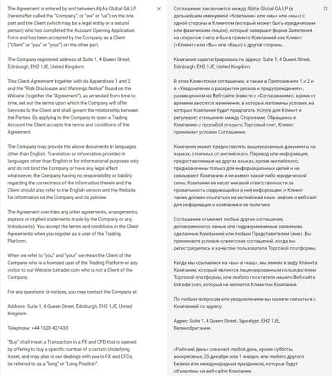 Контора БХ Трейдер - мошеннический проект, который создавался на скорую руку. Ведь даже в собственном соглашении, эти аферисты в начале пишут о том, что зарегистрированы на территории Великобритании. Но уже в следующих пунктах подставного регламента, попадаются фрагменты текста явно вырванные с документов возможно какой-нибудь другой кухни Форекс. А именно - того интернет-лохотрона, который базируется на территории оффшорного государства Белиз.