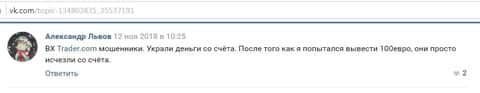 - В социальной сети Вконтакте также пишут о мошенниках Форекс BX Trader