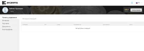Ссылок на другие страницы подвального сайта мошенников ByCryptoArea нету, так что мы попробовали пройти регистрацию на сайте аферистов Би Крипто Ареа с целью узнать больше информации. Стоит отметить что при регистрации можно вводить абсолютно любые данные и за этим сайт жуликов ByCryptoArea особо не следит. При попадании в личный кабинет шулеров Би Крипто Ареа вы можете увидеть полупустую страницу с несколькими разделами. Увидеть данную страницу вы можете на изображении ниже.