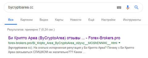 К сожалению, или же к счастью в сети интернет пока не представлено огромного количества отзывов от облапошенных мошенниками ByCryptoArea клиентов, которые повелись на данный лохотрон. Это внушает надежду на то, что пользователи при поиске информации о жуликах форекс в лице конторы Би Крипто Ареа не попадутся в ловушку аферистов и на их купленные отзывы, а просто прочтут данную статью и забудут о шулерах ByCryptoArea дабы не потерять в этом лохотроне свои деньги.