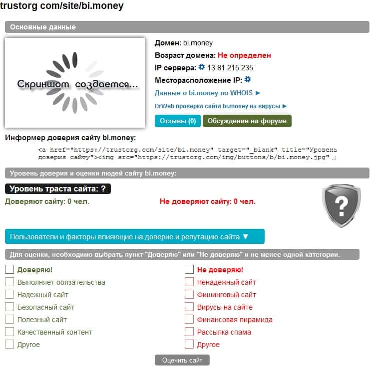 На сайте "Доверие в Сети" удалены все оценки работы мошенников Bi Money