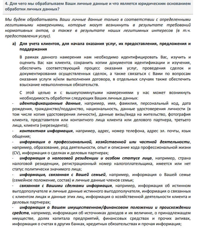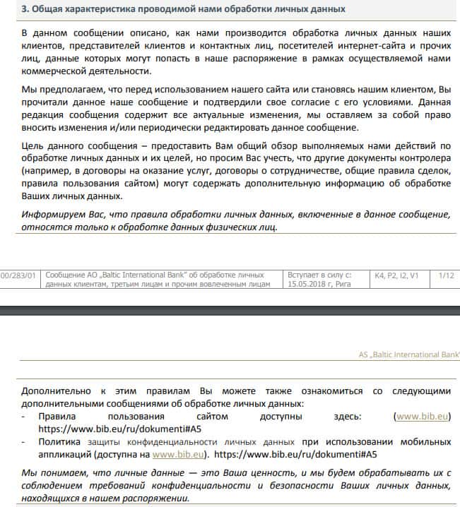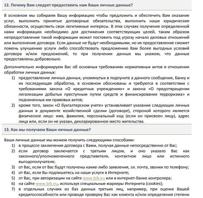 Далее в политике конфиденциальности мошенников БИБ следует информация о том, что аферисты BIB обрабатывают личную и персональную информацию своих наивных клиентов, а пользователи в свою очередь обязаны предоставлять шулерам личную и персональную информацию. На изображении ниже вы можете увидеть и прочесть следующий раздел.