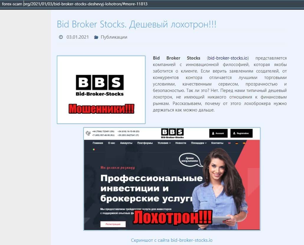 Обзоры, разоблачающие псевдоброкера Bid-Broker-Stocks io