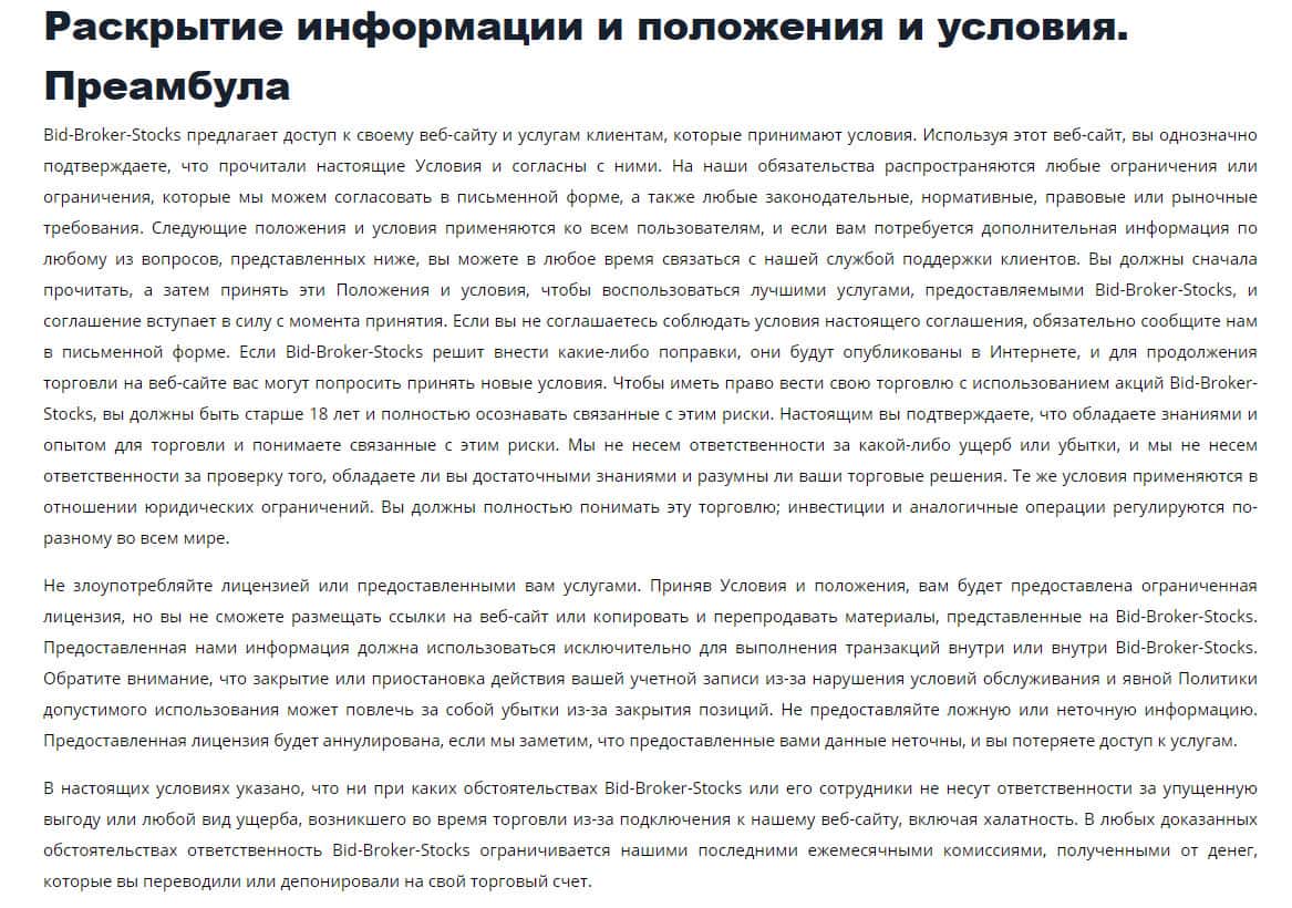 Клиентское соглашение брокерской компании Bid-Broker-Stocks io