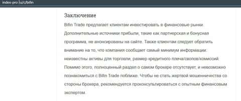 В заключении к следующему материалу отмечено, что нужно с опаской относиться к таким конторам, как псевдо-организация BiFin Trade. И не вкладывать туда свои деньги не подумав.