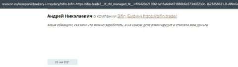 Еще один клиент пожаловался на то, что контора BiFin Trade обманывает свою клиентуру. При чем они взяли кредит, а остальную часть денег списали с банковской карты жертвы.