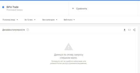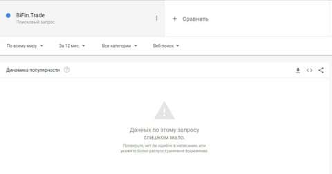 Если ввести бренд в виде официального сайта конторы без точки "BiFin Trade", то поисковая система Гугл не выдает никакой статистики за последнее время.