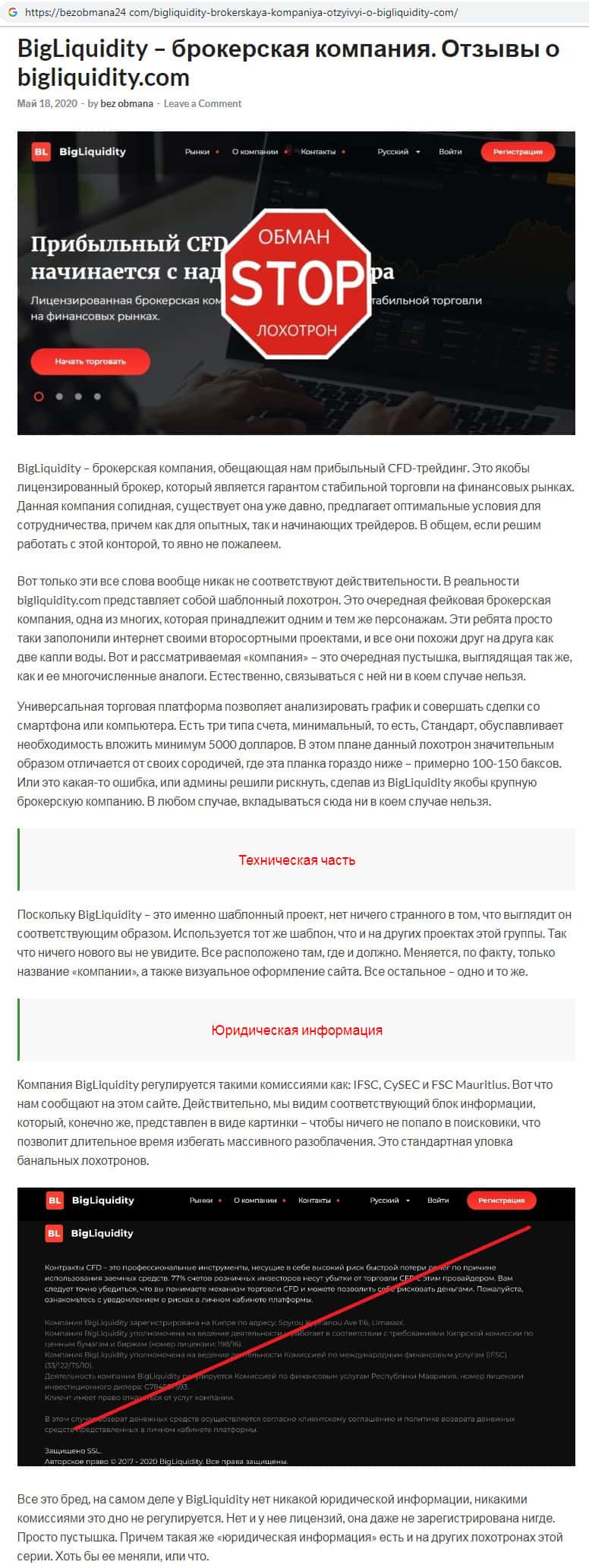 На информационном интернет-ресурсе bezobmana24 com отыскана статья о жульнической организации BigLiquidity, которая заманивает наивных и доверчивых пользователей всемирной паутины на свой дырявый сайт, предлагая якобы широкий спектр услуг, при том, что явно является брокером-мошенником.