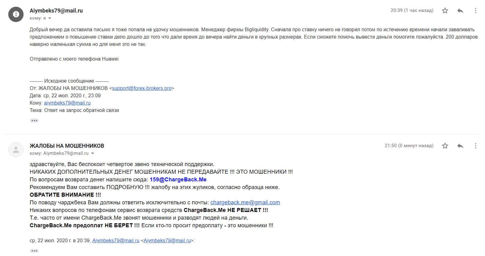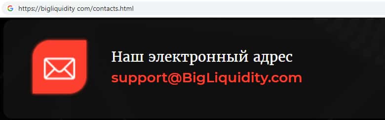 - адрес электронной почты псевдо-брокерской конторы BigLiquidity: support@BigLiquidity com