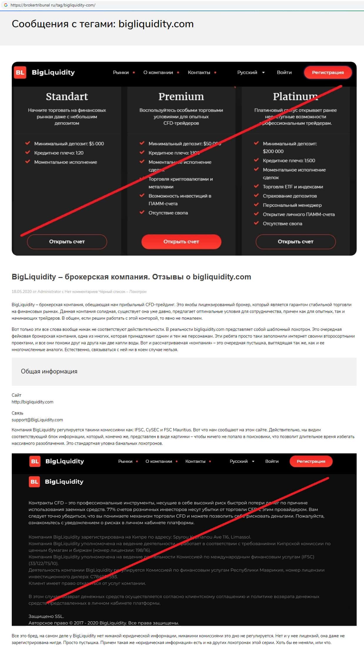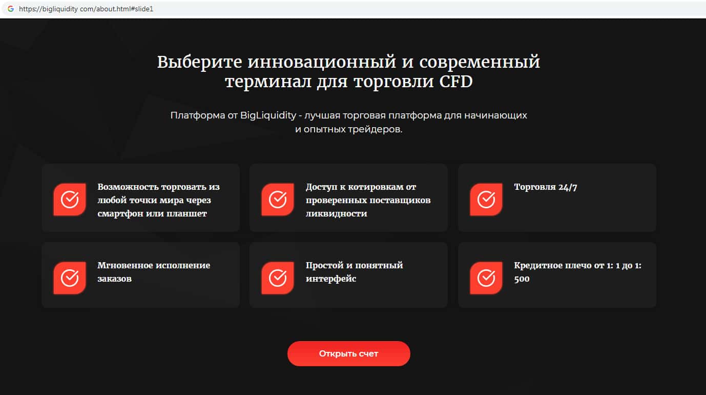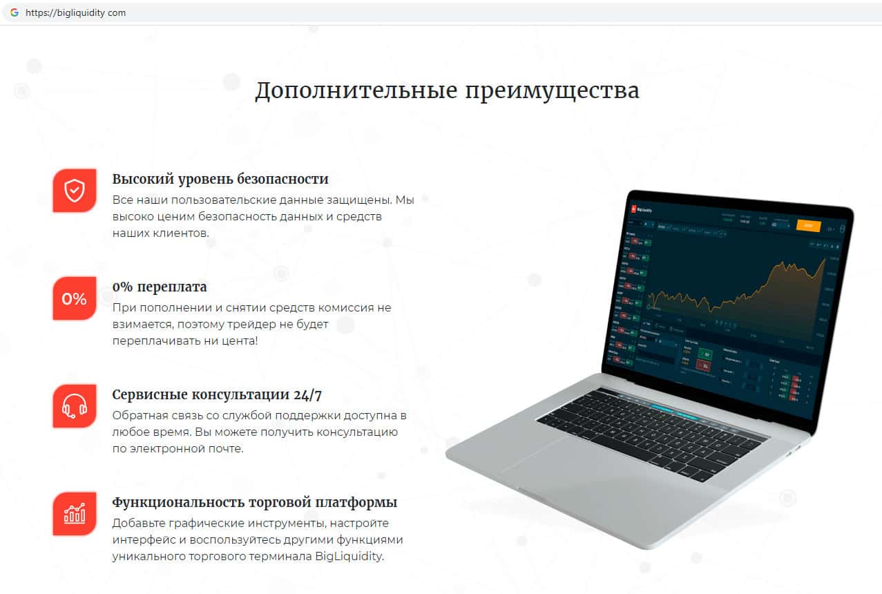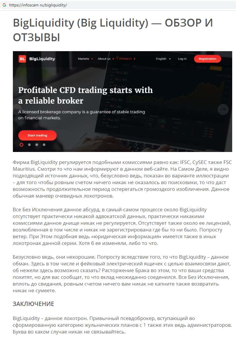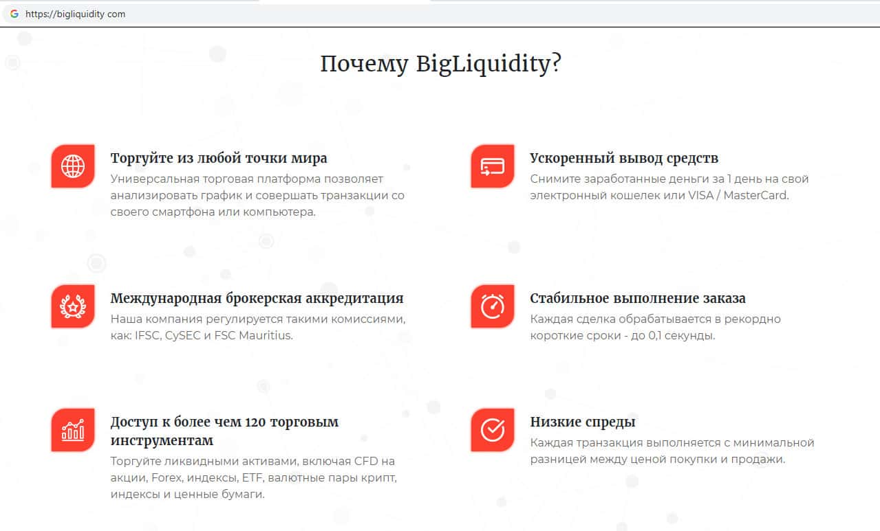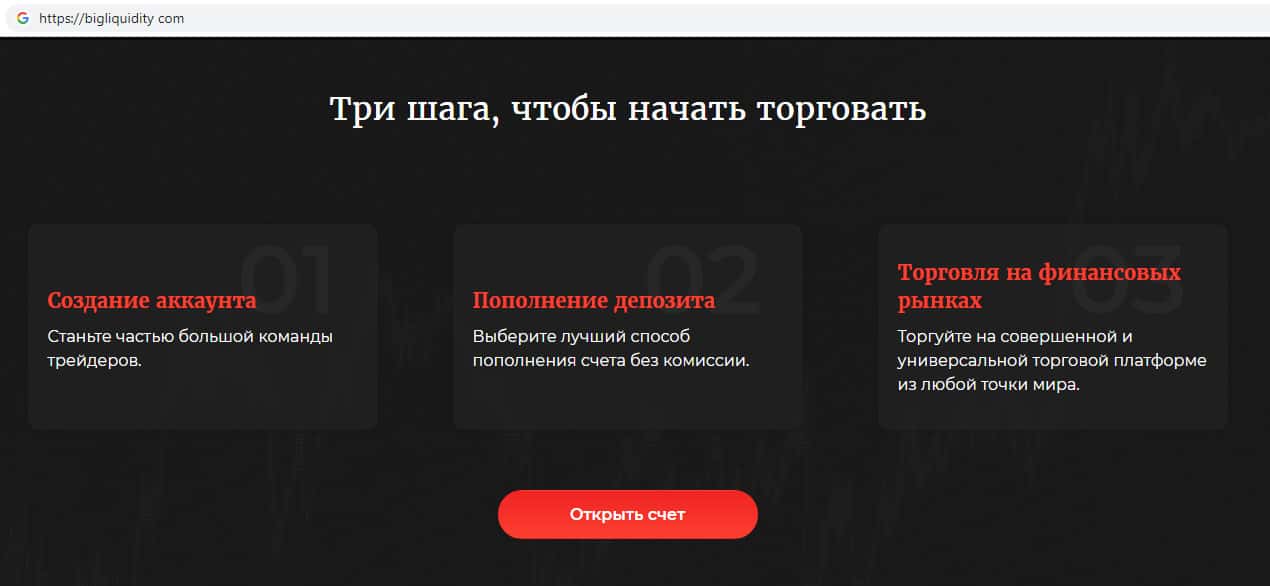 - Обзор официального сайта мошеннической организации BigLiquidity