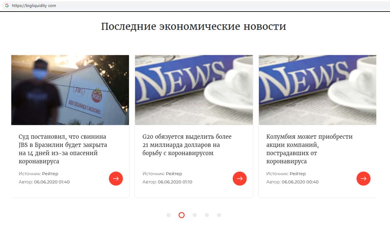 - Экономические новости на сайте мошеннической организации Биг Ликвайдити