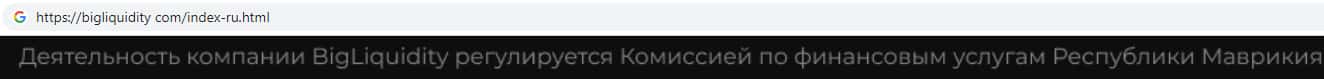 - Информация о регуляции компании Биг Ликвайдити не соответствует действительности