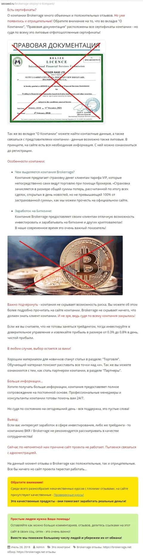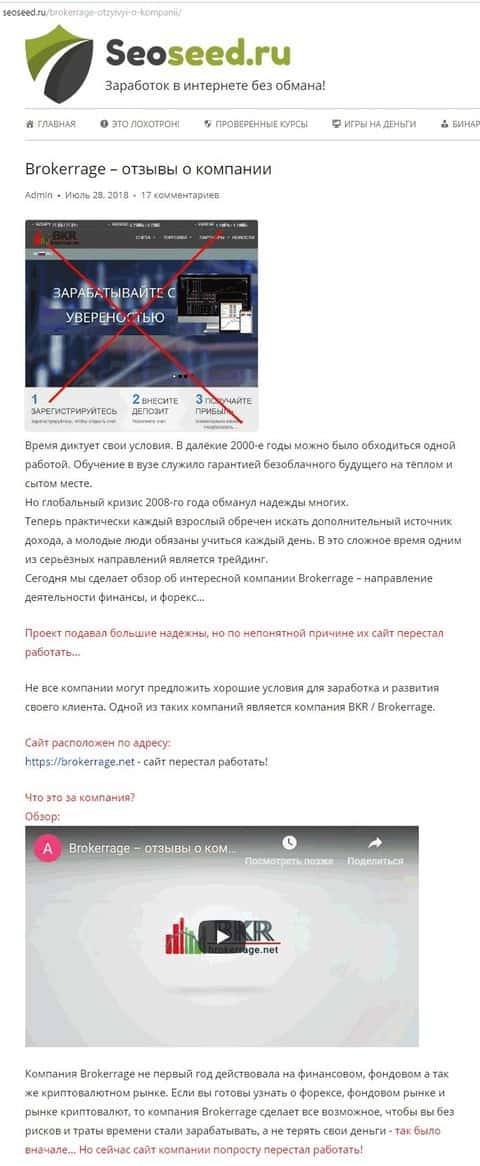 Схожего мнения придерживается и Интернет-ресурс seoseed ru, один из немногих, написавших правду о лохотроне БиКейАр. Данный лохотрон BKR – обыкновенный хайп, предлагающий огромные проценты заработка в день, что является первым и главным признаком всех хайпов. Таким образом БиКейАр, используя покупные отзывы и статьи заманили туда людей побольше.