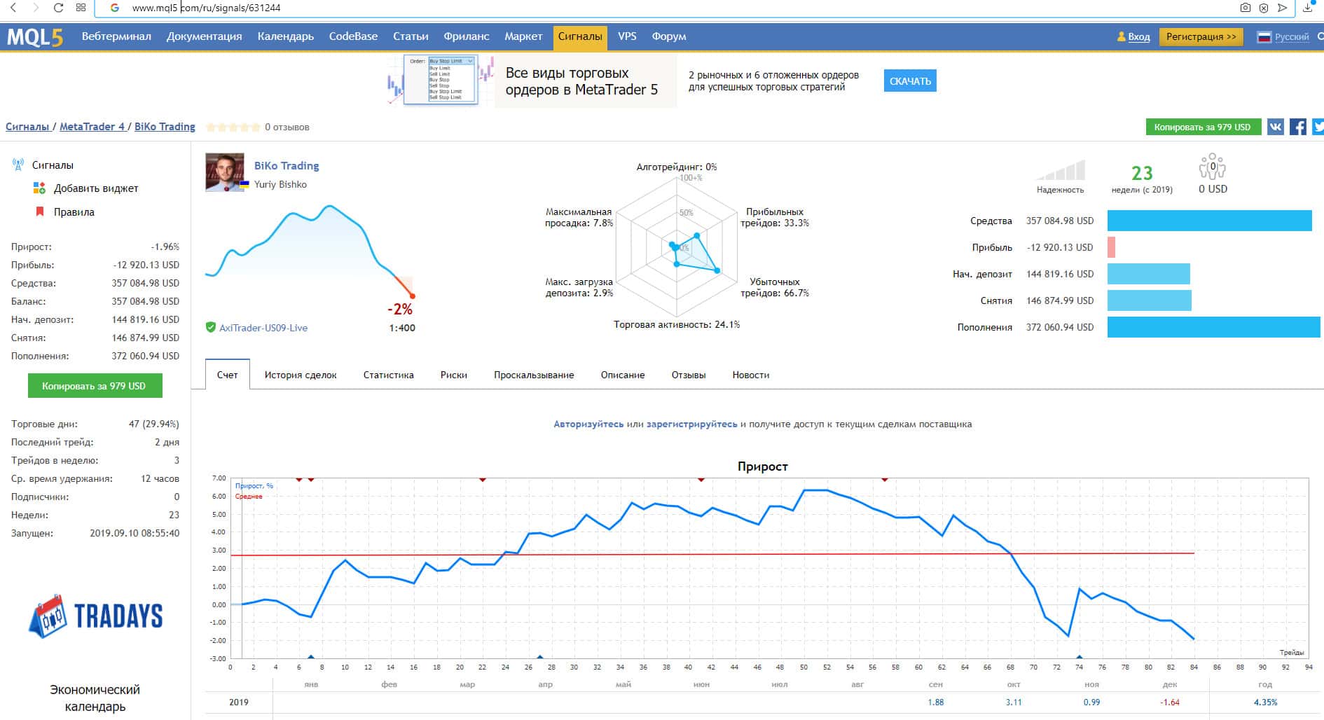 Липовая статистика по сигналам от конторы BiKo Trading