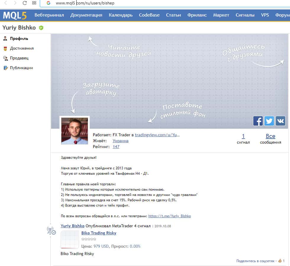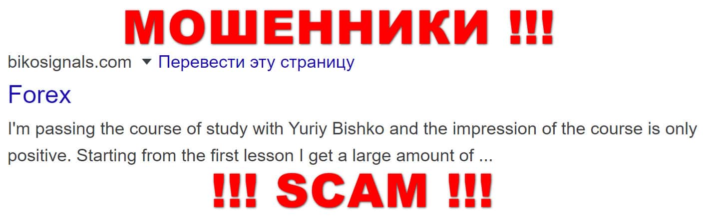 Из информации, которая размещена на сторонних ресурсах, нам удалось узнать, что всем этим форекс-лохотроном БиКо Трейдинг заправляет некий псевдо-трейдер Юрий Бишко. Он на разных сайтах оставляет лживую статистику о торгах и ссылается на свой основной ресурс BiKo Trading, где предлагает воспользоваться его сервисом.