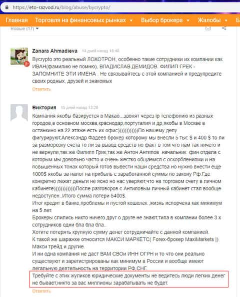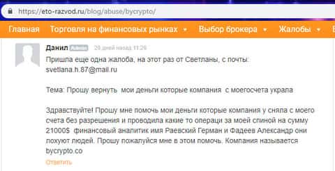 - Отзывы о шулерах ByCrypto с сайта eto-razvod ru