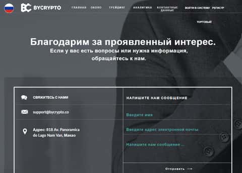 В разделе контактов мошенников ByCrypto присутствует лишь форма связи с электронным адресом, а так же абсолютно посторонний, не связанный с жуликами БиКрипто адрес. Такое ограниченное количество контактов говорит о том, что шулера ByCrypto не особо хотят выходить на связь со своими клиентами, так как занимаются мошенничеством. Ниже перечислим указанные лохотроном ByCrypto контакты: