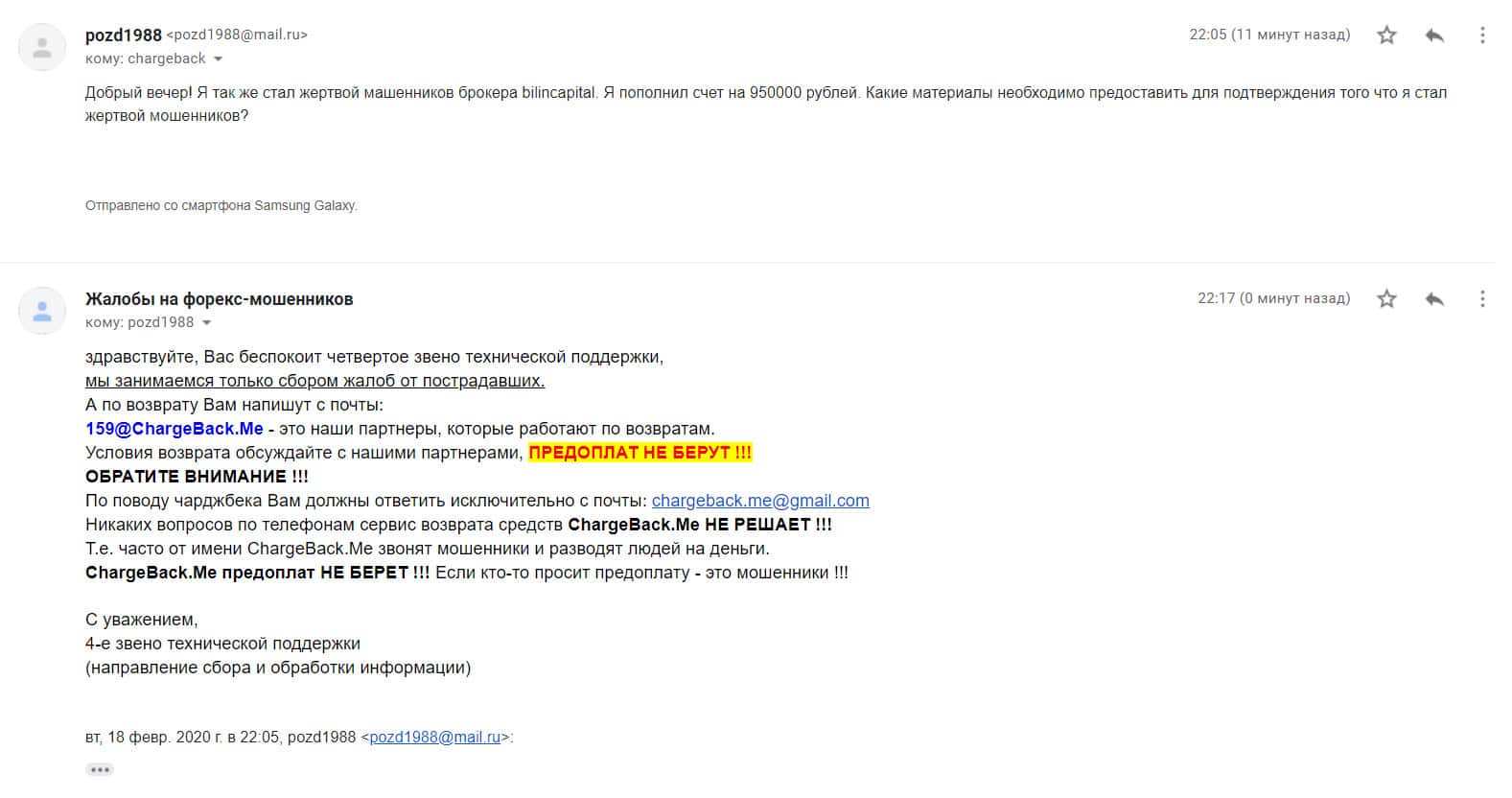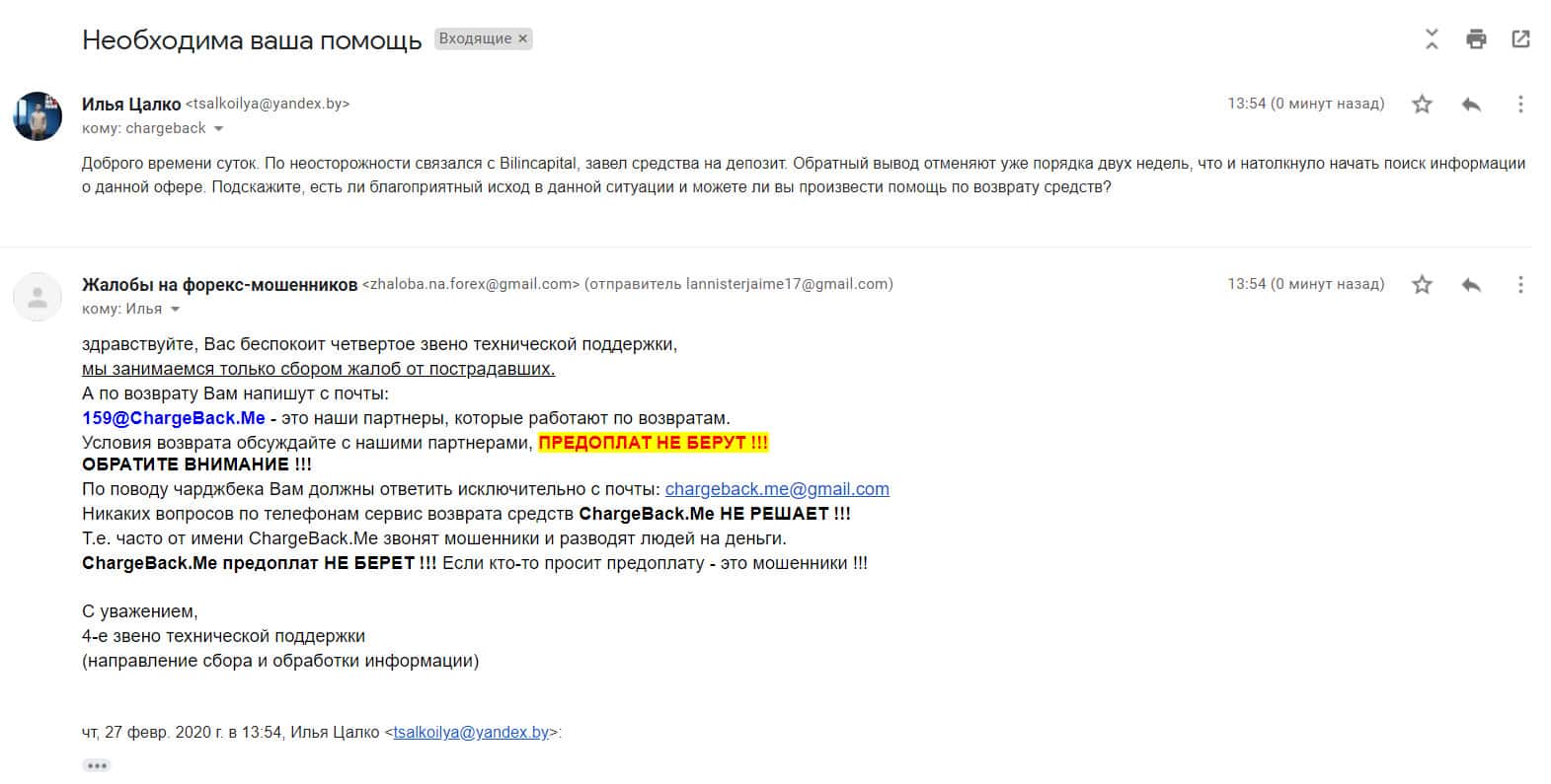 - адрес электронной почты мошенников BilinCapital: support@bilincapital com