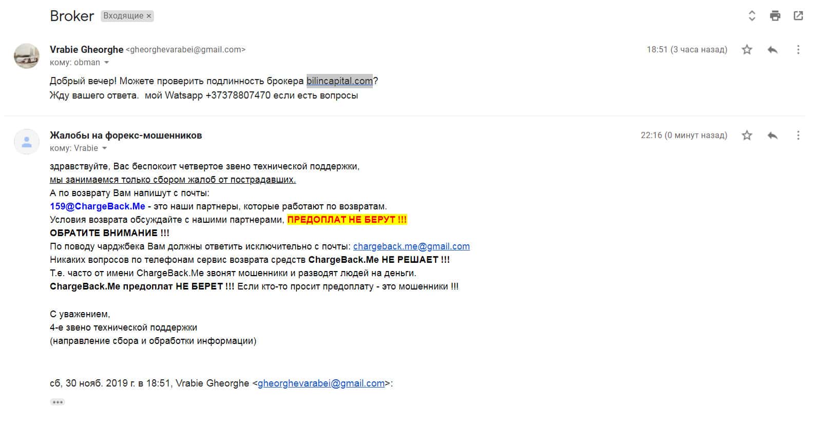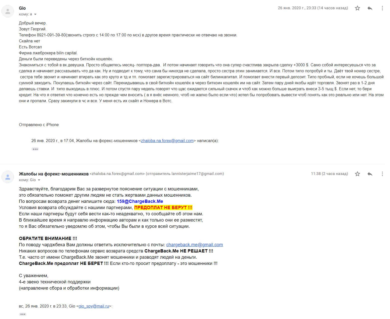 - Очередная жалоба на аферистов в лице конторы BilinCapital