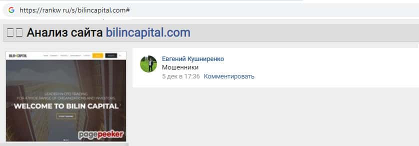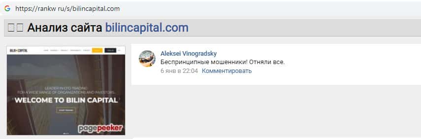 - Контора BilinCapital - очередной развод в глобальной сети интернет