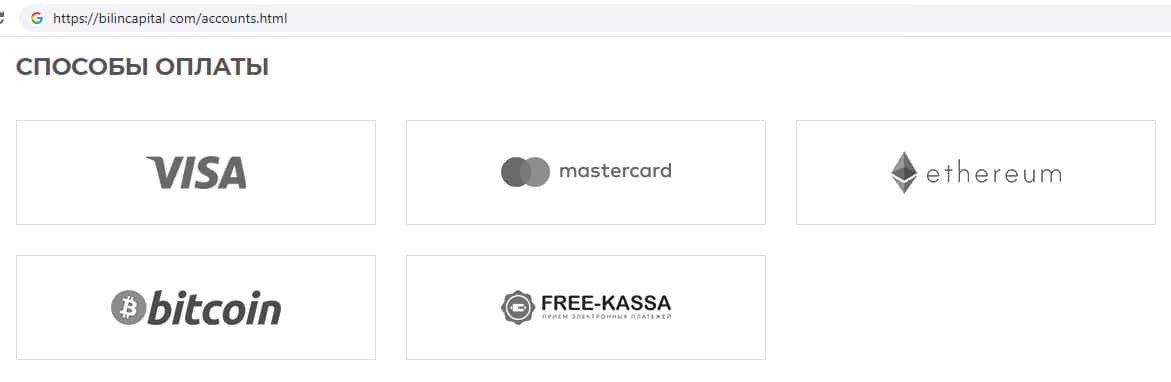 Способы перевода денежных средств на сайте брокера-мошенника Билин Капитал