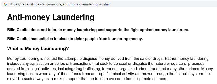 - Борьба с отмыванием денежных средств на сайте скам-брокера Билин Капитал