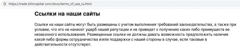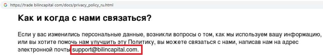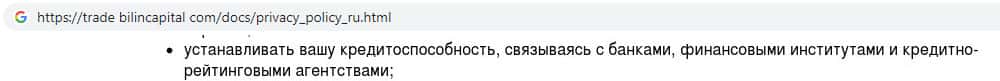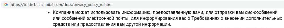 - Политика конфиденциальности на сайте мошеннической организации BilinCapital